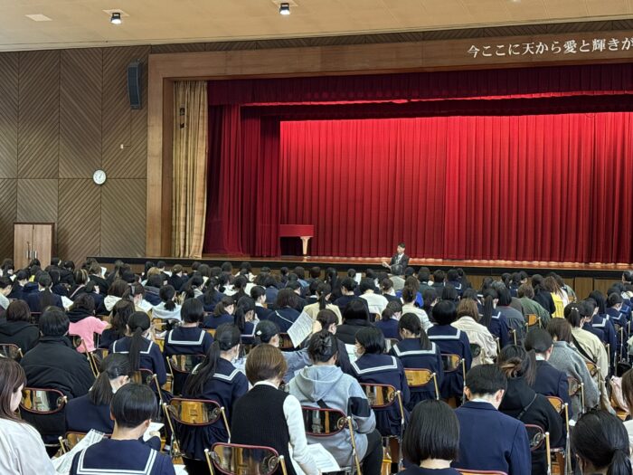 本日、新入生の合格者招集がありました。教務主任、生徒指導部長などからの説明や4月から使う物品の販売等がありました。