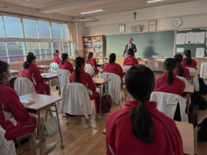 【大倉先生】これまで大きなトラブルもなく過ごしてこられたのは、互いを尊重し合い、統率感を持って行動してきた結果です。その姿勢は日頃の生活の積み重ねから身についたものではないでしょうか。「性格は生活から、結果は経過から」という言葉があるように、普段何気ない行動の中で人を思いやる気持ちを大切にしてください。また、進路がすでに決まった人も多くなりましたが、中にはまだ決まっていない仲間もいます。そんなときこそ周りが盛り立て、支え合うことが重要です。最後の1人が決まるまで、クラス全員で協力し、すべてにおいて「このクラスが学校で1番」だと胸を張れるような存在であってほしいです。