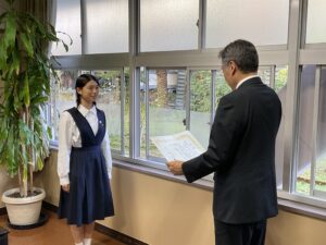 国税庁が主催する「税に関する高校生の作文」において、情報ビジネス科2年1組 園田 茉子 さんが「熊本小売酒販組合賞」を受賞しました。