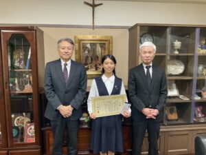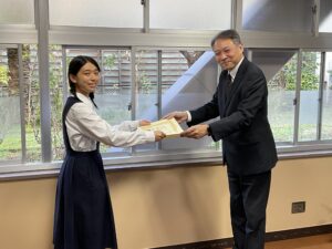 11/18(月)に熊本西税務署の方がご来校くださり、賞状と記念品を授与してくださいました。