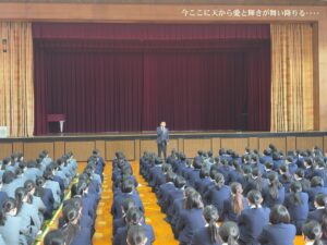 本日、普通コース・総合進学コースのコース朝礼が行われ、コース主任の木﨑先生よりお話がありました。