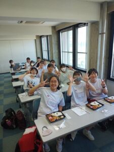 入所式の後、担任教師からの今後の動きの指示を受けて、さっそく入所しました!初日の昼食、生徒たちははじける笑顔で弁当を食べていました。