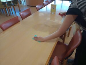 8/1(木) 二日目も快晴!清掃後、朝の集いでラジオ体操を行いました。朝食後、食器の片付けやテーブル拭きなど生徒たちはテキパキ動いていました。