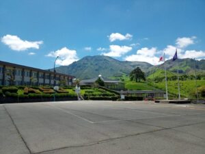 7/31(水) 本校から車で約1時間半、阿蘇の外輪山を望む、国立阿蘇青少年交流の家に到着しました。