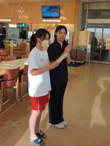 8/1(木) 二日目も快晴!清掃後、朝の集いでラジオ体操を行いました。朝食後、食器の片付けやテーブル拭きなど生徒たちはテキパキ動いていました。