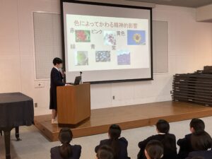 各クラスから選ばれた代表者14名が、スクリーンも利用しながら立派な発表をしてくれました。深く探究した内容を5分前後に収めるのは難しかったと思いますが、クイズや問いかけなども交えて工夫を凝らした発表が多く見られました。