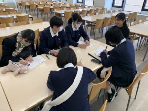 先輩たちがキャンパス内を案内しながら交流してくださいました。