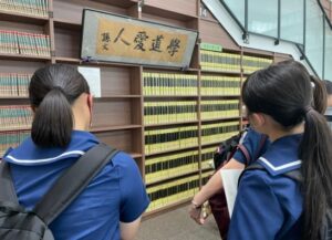 中央図書館では、図書館職員の方が1階から4階までのフロアの説明をしてくださいました。生徒たちは、大学の図書館の規模の大きさや、蔵書数の多さに驚いていました。中央図書館の本をすべて積み重ねたら、宇宙に達するそうです。