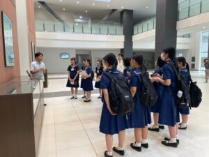 中央図書館では、図書館職員の方が1階から4階までのフロアの説明をしてくださいました。生徒たちは、大学の図書館の規模の大きさや、蔵書数の多さに驚いていました。中央図書館の本をすべて積み重ねたら、宇宙に達するそうです。