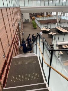 階によってイメージカラーやテーマが異なっており、上の階に行くにつれてアクティブになるように、学生のことを考えて設計されている美しい図書館でした。