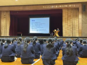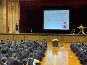 12月5日(木)に、熊本中央警察署の生活安全課から松田志保巡査部長が来校され、闇バイトについてお話をしていただきました。