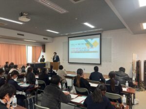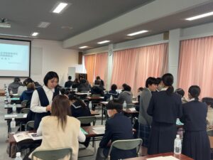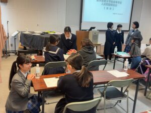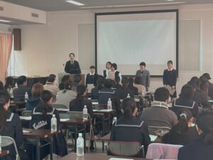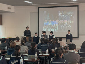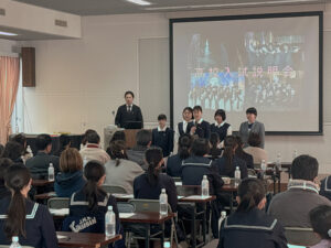 開会の挨拶の後、生徒会の生徒による学校紹介が行われ、参加者の皆さまに熊本信愛女学院の高校生活や特色について、実際の声を交えてご紹介しました。