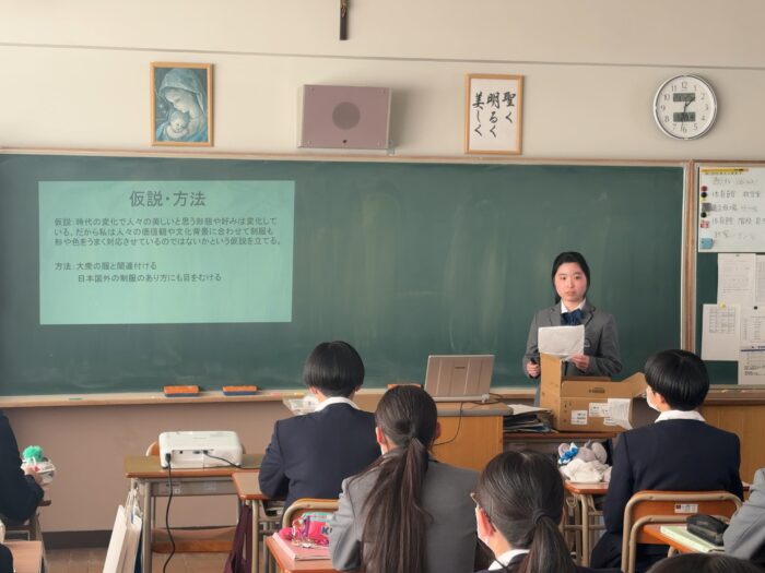 生徒からは、「違うクラスの人の発表を聞くことで、普段気にかけてこなかった事柄について考えを深めることができた」という意見がありました。
