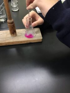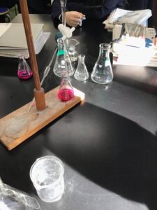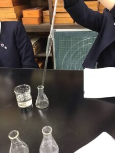 総合進学コース1年の化学基礎の授業で、中和滴定の実験を行いました。