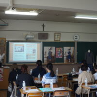 各コースの説明、新制服の紹介に始まり、お聖堂や図書館、食堂など校内のさまざまな施設の見学を行いました。