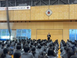 本日、高校1年生の学年朝礼が行われました。主任の冨安先生からは、修学旅行2日目に予定されている大学・企業訪問について詳しい説明がありました。生徒たちは、実際に自分の目で大学や企業の現場を見学し、将来就きたい職業や進路について具体的に考える貴重な機会となります。