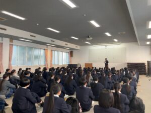 先日の学年朝礼で、学年主任の片山先生から「ユニセフの活動から、今の自分たちに何ができるかを考えよう」とのお話がありました。