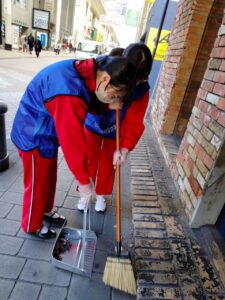 生徒は初回よりも慣れた様子で、隅々までキレイにしようと清掃に取り組んでいました。これからも、美化意識・地域貢献の精神を大事にしてほしいと思います。