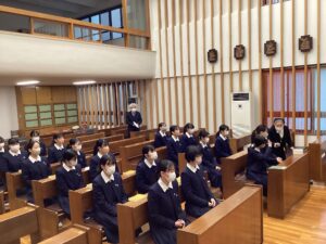 教頭先生から受験直前期の心構えについてお話を頂き、生徒は緊張感のある引き締まった表情で話を聞いていました。