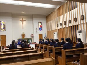 担任の先生からはメダイが手渡されました。