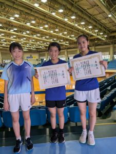 中2 永久井凛さんがシングルス優勝 中3 甲斐楓果さんが3位 中1 山下咲姫さんが5回戦敗退ベスト32