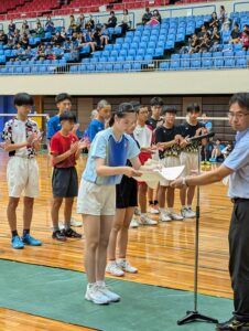 おめでとうございます。永久井さんと甲斐さんが県大会出場いたします。県大会は、7月20日、21日にトヨオカ地建アリーナ(八代市総合体育館)で行われます。
