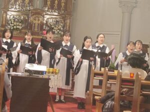 聖歌を中心に6曲、気持ちよく歌うことができました。演奏後は多くの方からお褒めの言葉をいただき、大変励みになりました。