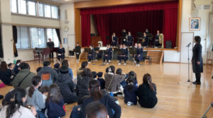 本校吹奏楽部が、熊本信愛女学院幼稚園で演奏会を行いました。