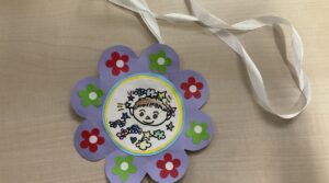 演奏が終わった後、一列に並ぶ園児たち。なんと、吹奏楽部ひとりひとりのために手作りメダルのプレゼントを準備してくれていました!手書きのカラフルなイラストと「ありがとうございました」のメッセージに、部員はみんな感激していました。