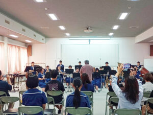 吹奏楽部が、7月23日のコンクールに向けた最終リハーサルを行いました。多くの保護者の方が聴きに来て下さいました。