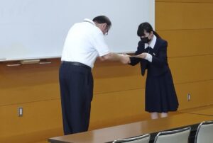 令和6年度熊本県高等学校文化連盟写真専門部春期写真コンテストにおいて、普3−1の橘眞由莉さん(長嶺中出身)が入選しました。おめでとうございます!今後の活躍に期待しております。(写真は先日行われた表彰式のものです)