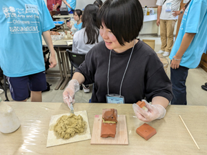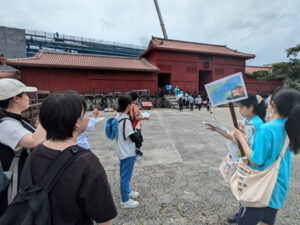 2日目の午前中は、現在修復中の首里城を見学しました。午後は、沖縄県立芸術大学にて首里城で使われていた瓦を用いての漆喰シーサー作りを行いました。制作を通して沖縄の文化に触れ、学ぶことが多かったように思います。
