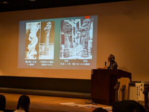 3日目は、琉球大学名誉教授の西村貞夫 氏に作品の講評を行なって頂いた後、『首里城に見る沖縄の美術・文化〜大龍柱の独自性について〜』というテーマで講演していただきました。首里城の構造や龍柱の特徴など首里城について深く理解を深める機会となりました。作品講評も行われ学ぶことが多かった大会となりました。今回の様々な活動を通して学んだことを今後の学校生活と創作活動に生かしてほしいと思います。